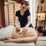 Alla gäster erbjuds ångbad och bastu samt vandring och cykling. Detta boende lockar med ett hälsocenter med inpackning, kroppsskrubb och pedikyr.
